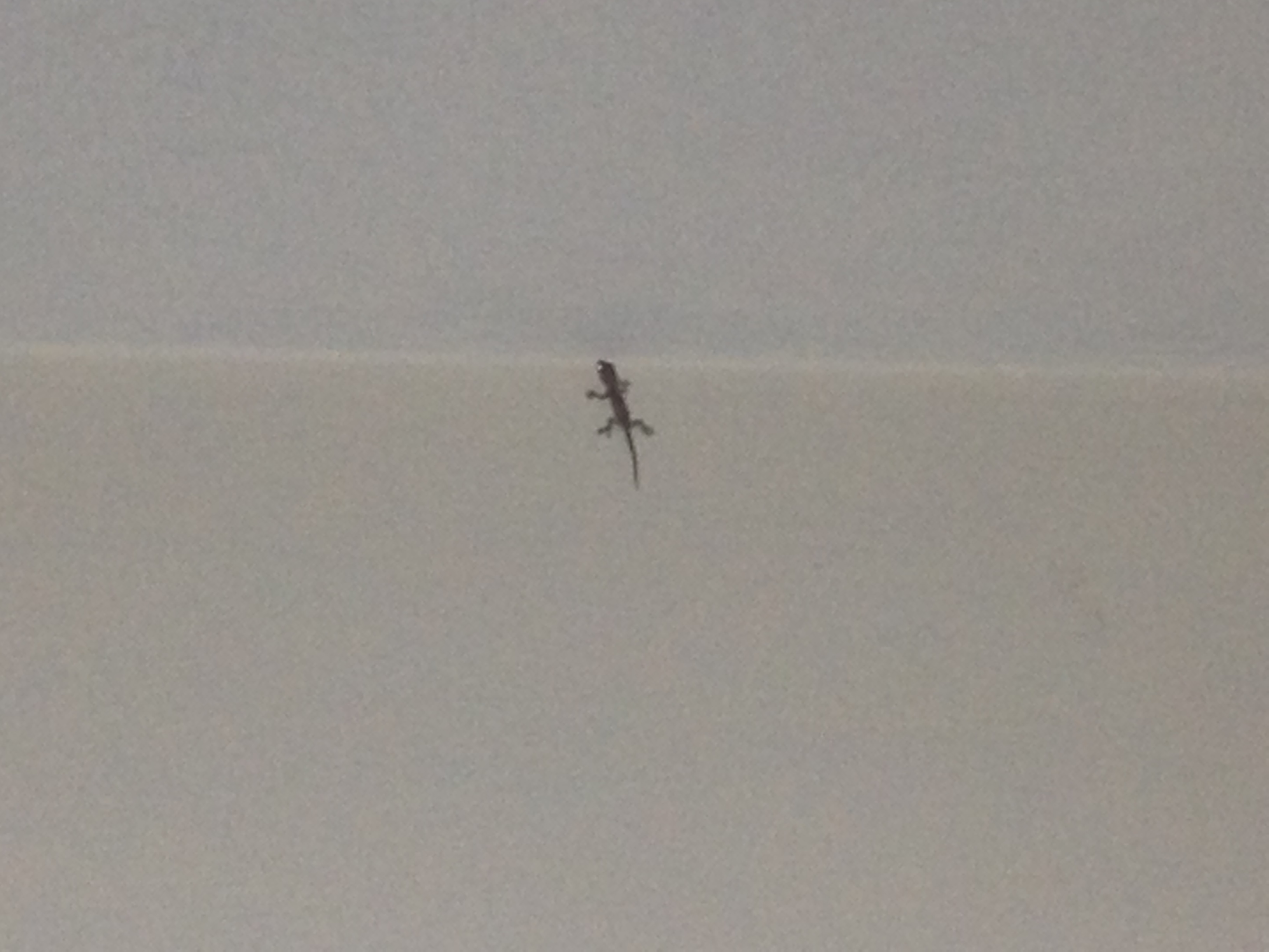 Good news! I’m delighted to report that Barry the Bathroom Lizard has gone forth and multiplied! A miniature Barry was sighted in the light fitting in my bedroom.
