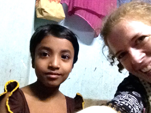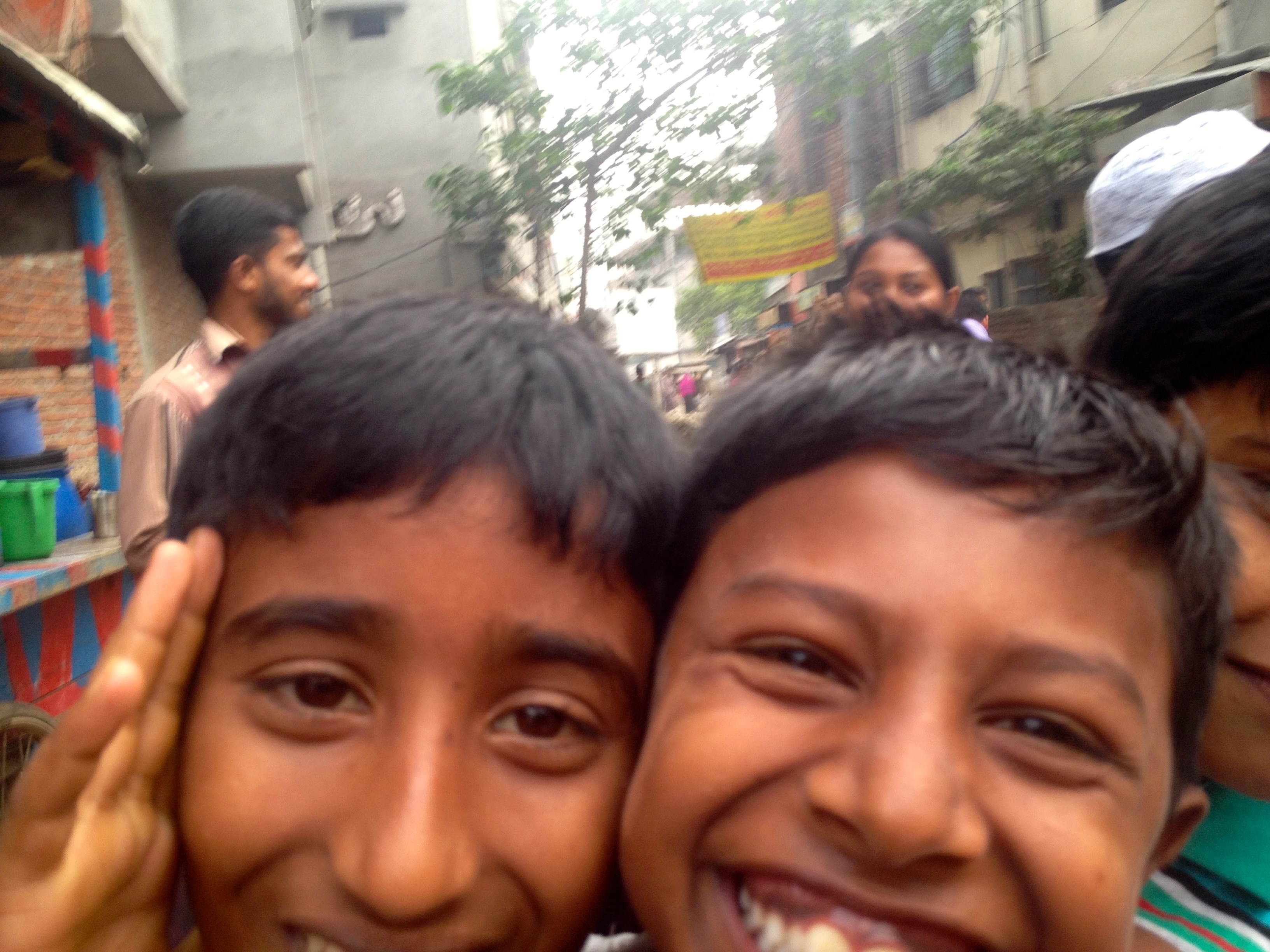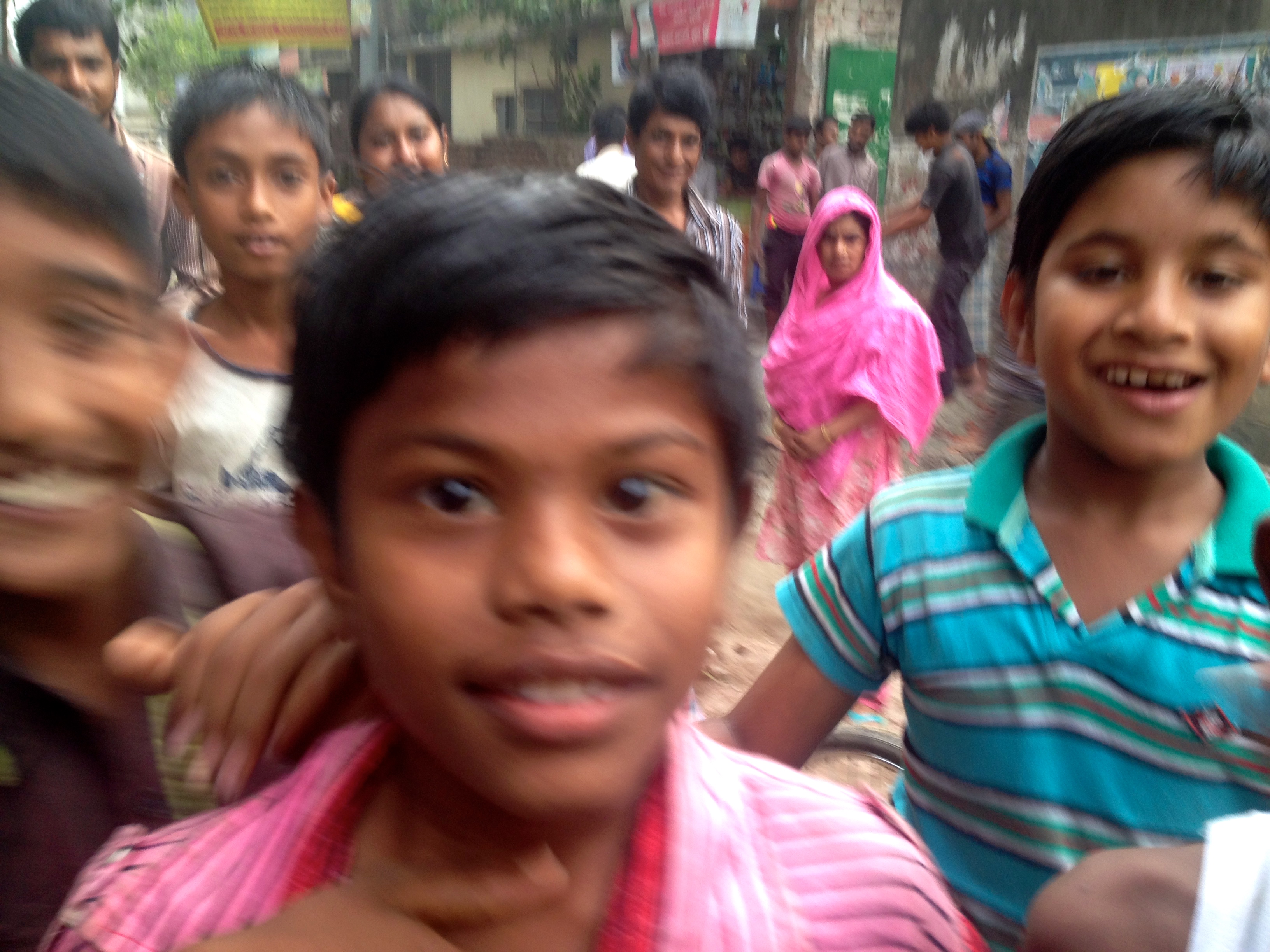 Mitu’s rickshaw is stuck in the alley, and he can’t get it out. Mitu’s wife and daughter hold hands with me as we walk along the alleys – they are beaming, and it feels like the entire area is staring as we happily make our way.