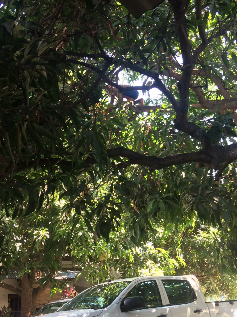 .1730. Leave work (deskless, chairless) walk home. Cat jumps out of the mango tree, and asks for a pat and a feed. Good cat.